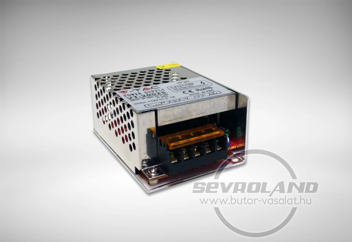 Ipari használatra tervezett, 25W beltéri 12 V-os SMPS tápegység, LED világításhoz.