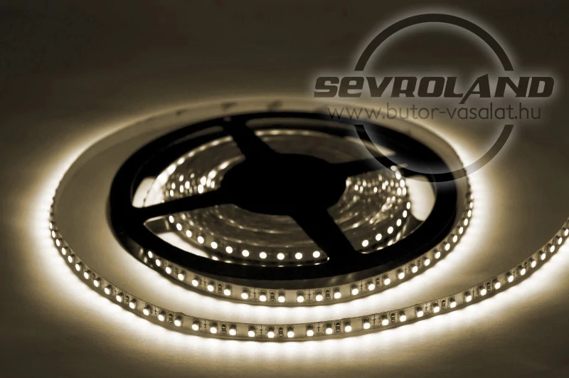 120 Led / méteres, öntapadós, melegfehér fényű Led szalag. Egyenletes, homogén fényt ad és rendkívül energiatakarékos.