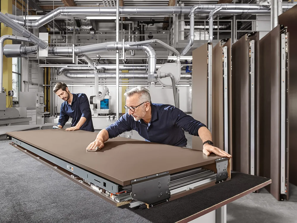 - A Blum szerviz-interfész biztosítja, hogy a vasalatok beépített állapotban is egyszerűen hozzáférhetők és leszerelhetők legyenek.