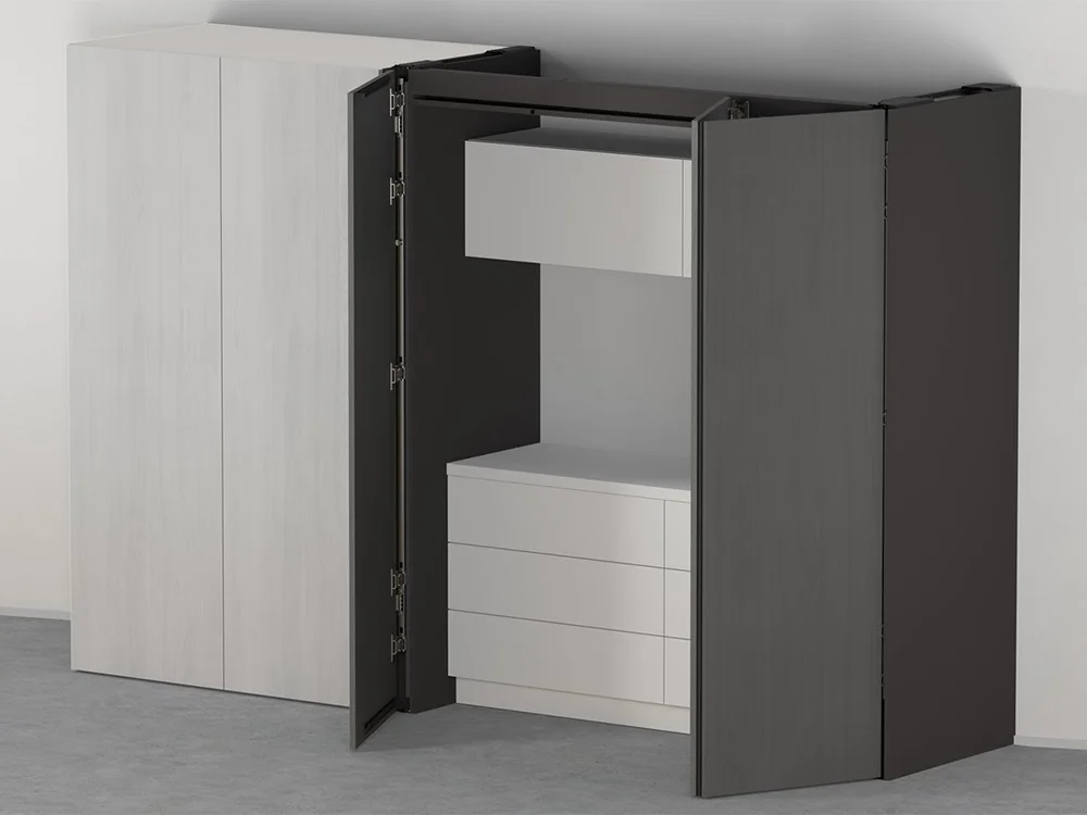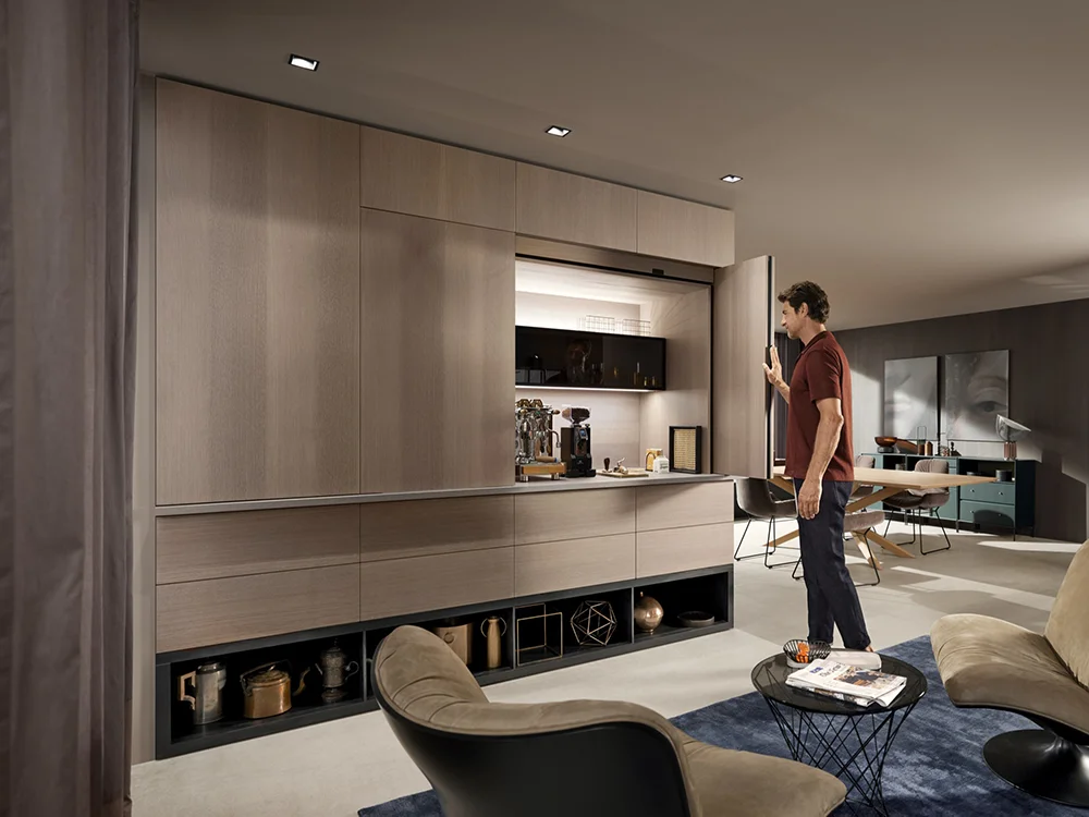 A Blum REVEGO rendszer piaci sikerét a magas minőségű, precíz mechanikának köszönheti, amely lehetővé teszi teljes lakóterek gyors elrejtését, ezzel stílusos átmenetet teremtve a különböző funkciókat betöltő lakóterek között. A pocketrendszer sikerét számos nemzetközi díj is bizonyítja.