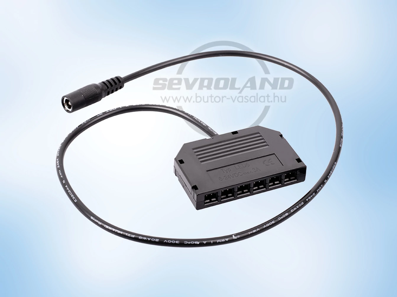 Elosztó 6 db MINI csatlakozós kábelhez. Így egy adapterről akár 6 db LED szalag üzemelhet.