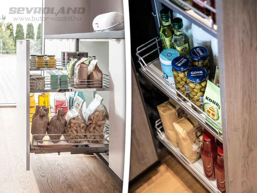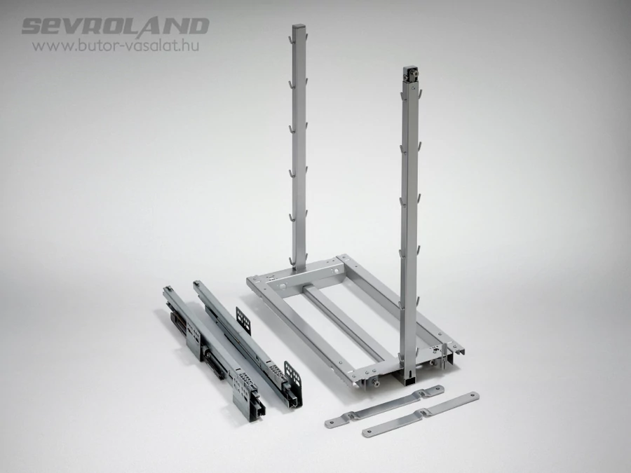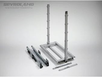Kesseböhmer vasalatszett, 400 mm széles, fenéklapra szerelhető. A kosarak (külön rendelhető) tetszőleges kiosztás szerint felhelyezhetőek.