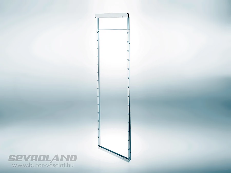 Dispensa keret univerzális magasság-állítási lehetőséggel. A kosarak (külön rendelhető) tetszőleges kiosztás szerint felhelyezhetőek.