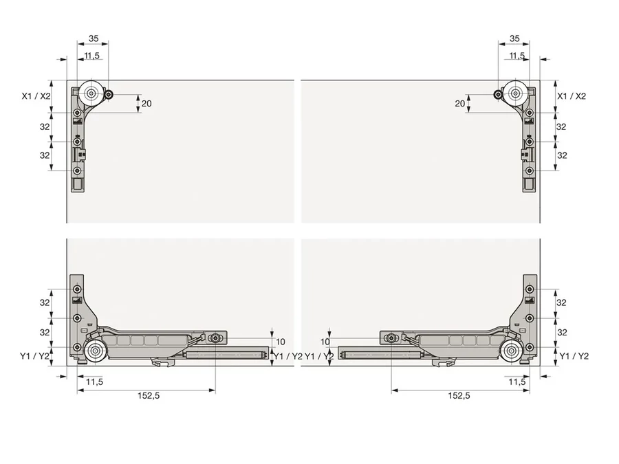 Hettich TopLine L görgőszett, 2 ajtós, jobb, max. 50 kg