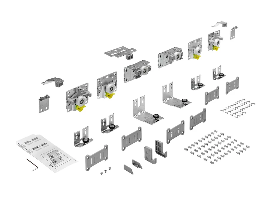 Hettich TopLine L korpusz előtt futó tolóajtó rendszerhez görgőkészlet, 3 ajtóhoz való.