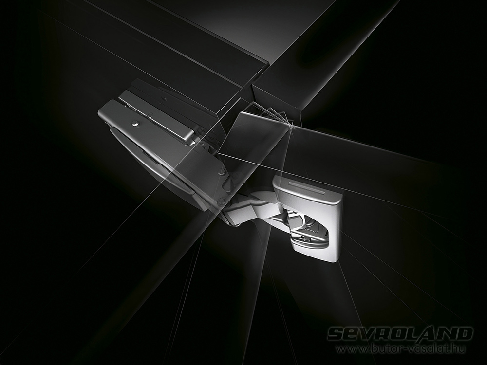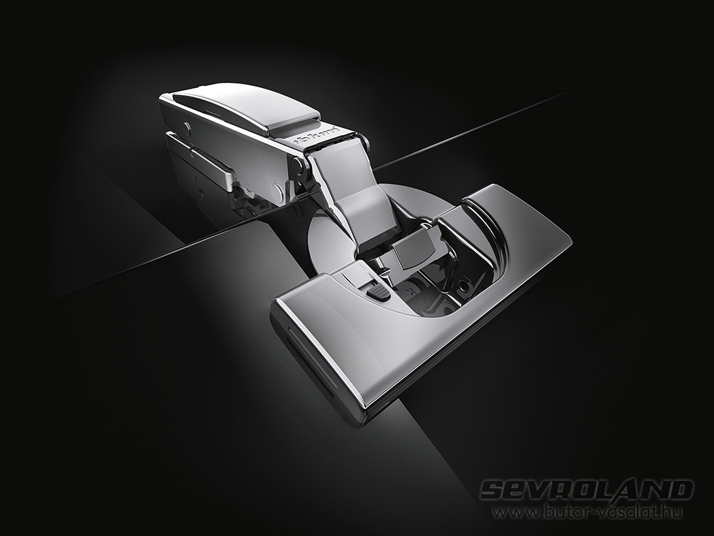 Az új 110°-os CLIP TOP BLUMOTION kivetőpánttal egészen vastag, akár 26 mm-es front is használható. Az új forgáspont miatt az ajtó nyitott állapotban nem ütközhet neki a korpusz élének. Lehetövé teszi az oldalsó minimális fugák csökkentését. A megszokott CLIP szerelőtalpakkal használható.