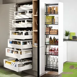 A kamraszekrények alkalmazása minden modern konyhában elengedhetetlen a káoszmentes tároláshoz. Míg a Blum SPACE TOWER a nagy teherbírású egyedi fiókok, az optimális hozzáférés és a (155°-os pántoknak köszönhető) minimális térigény miatt praktikus, a Kesseböhmer Dispensa a teljes tartalom egyszerre történő áttekinthetőségével nyújt klasszikus és elegáns megoldást. Mindkét rendszer kombinálható elektromos nyitásrásegítéssel, így a modern konyhatervezés követelményeinek maradéktalanul megfelelnek, jelentősen növelve a konyhai munkafolyamatok ergonómiáját.