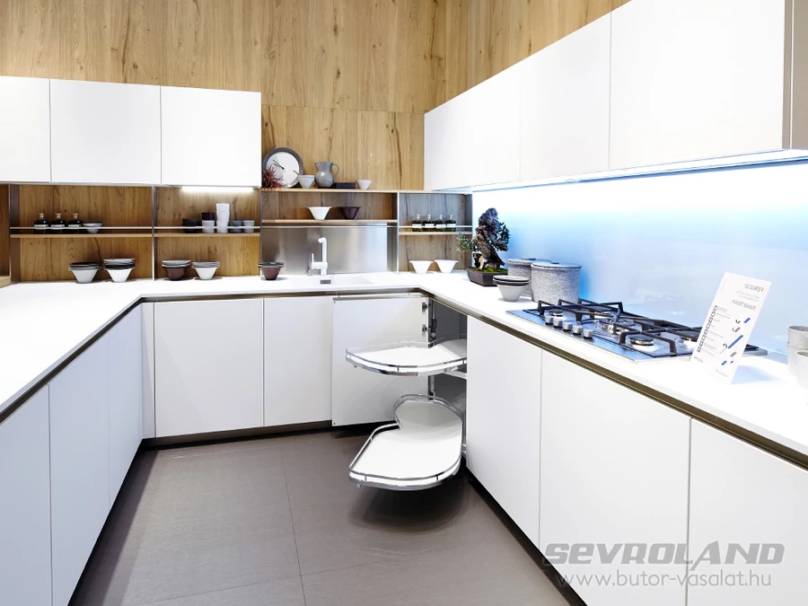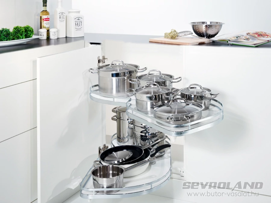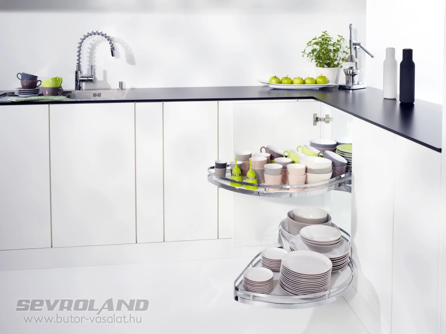 A LeMans II sarokvasalat rendszer a magas minőségű alapanyagoknak és a masszív kialakításnak köszönhetően kiemelkedően jó teherbírással rendelkezik. Polconként akár 25 kg terheléssel is finoman és lágyan mozog, megőrizve stabilitását. Sok tányér, nehéz tálak vagy esetleg konyha robotgép? Nem probléma...