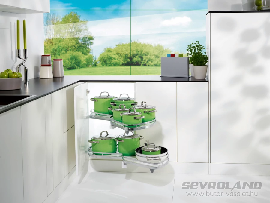 A LeMans II vasalat készlet egy továbbfejlesztett rendszere a német Kesseböhmernek. A korábbi LeMans terméken számos praktikus módosítást hajtottak végre, a következő verzió így lett világszerte ismert és népszerű termék. A hatékonyság és az innováció ötvözeteként a sarokszekrényben tárolt eszközöket egyszerűen és fáradságmentesen lehet elérni. Napról-napra öröm használni...