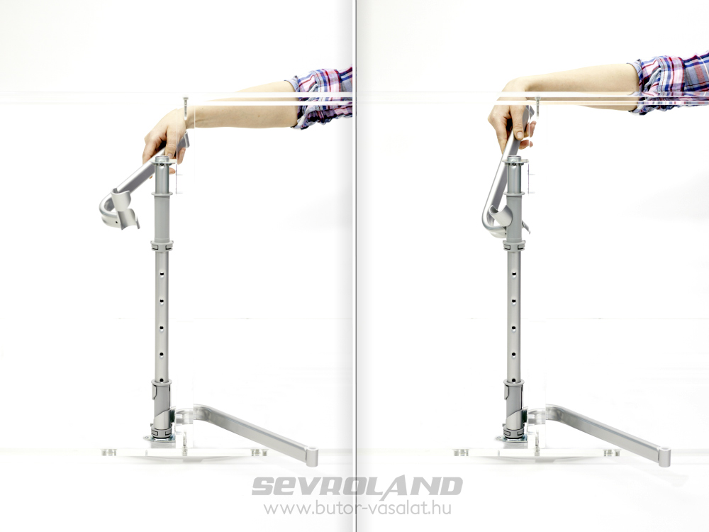 Az állítható magasságú tengely rögzítése után a kosárt tartó karokat kell felakasztani a központi tengelyre. A tengelyen a tartó kar fogadóját több magassághoz is be lehet állítani, a tárolni kívánt eszközökhöz igazodva. Polctartó kart ferdén tartva a tengelyre lehet fűzni, majd vízszintes pozícióban rögzül az alaphelyzetbe. (a lenti videón látható)