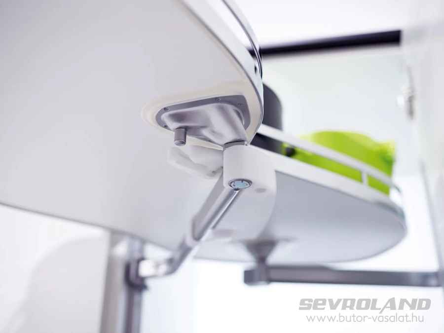 A Kesseböhmer egy precíz, finoman működő kiegészítőt tervezett a LeMans II vasalathoz: a SoftStoppPlus csillapító elemet. Biztosítja a LeMans II polcok lágy és halk záródását. A szerelés gyors és egyszerű: mielőtt a polcokat a tartó karokra helyezzük, az egyik karra lehet ráhúzni.