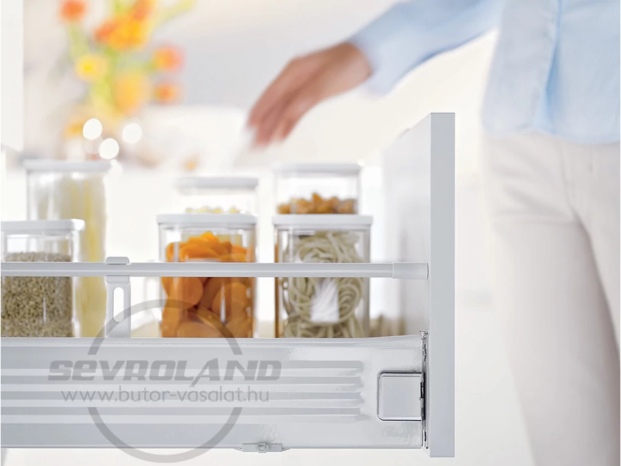 A Metabox fiókok fölé tehető kegészítő, oldalmagasító korlát használata olyan helyen ajánlott, ahol az előlap magassága jelentősen meghaladja a kávamagasságot. A fiókban tárolt magas elemek oldalirányú kiesését akadályozza meg.