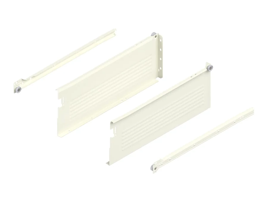 A METABOX fiókok kevés alkatrészből állnak - így egyszerűen és gyorsan összeszerelhetők. A fiókhoz szükséges alap vasalatok: 1 garnitúra fióksín + 1 pár előlaprögzítő. Kiegészítő elemek: METABOX BLUMOTION fékező vagy magasító korlát. (Nem része a fióksínnek az előlaprögzítő!)