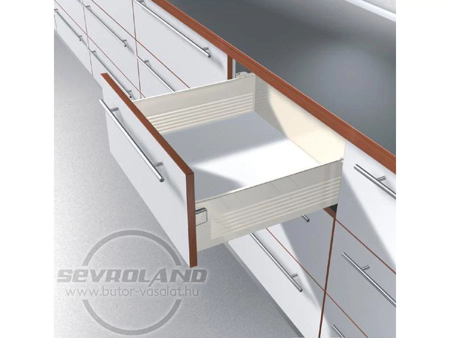 A H-s METABOX fiókok a 150 mm-es kávamagassággal akár nagy edényekhez is jól használhatók. A magas káva megakadályozza az apróbb dolgok kiesését is. A METABOX fém kávás fiókvasalatai hagyományos, jól bevált görgős megoldással működnek. Ez azt jelenti, hogy az alacsony árú, jó minőségű fiókgörgők hosszú ideig stabilan fognak működni...