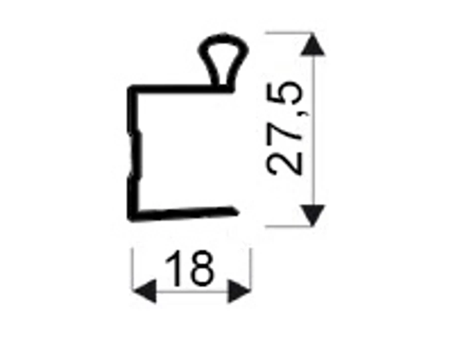 18 mm-es betétanyagra való fogó profil. Öntapadós kefecsíkokkal szerelhető (ütköző és porzáró kefecsíkok).