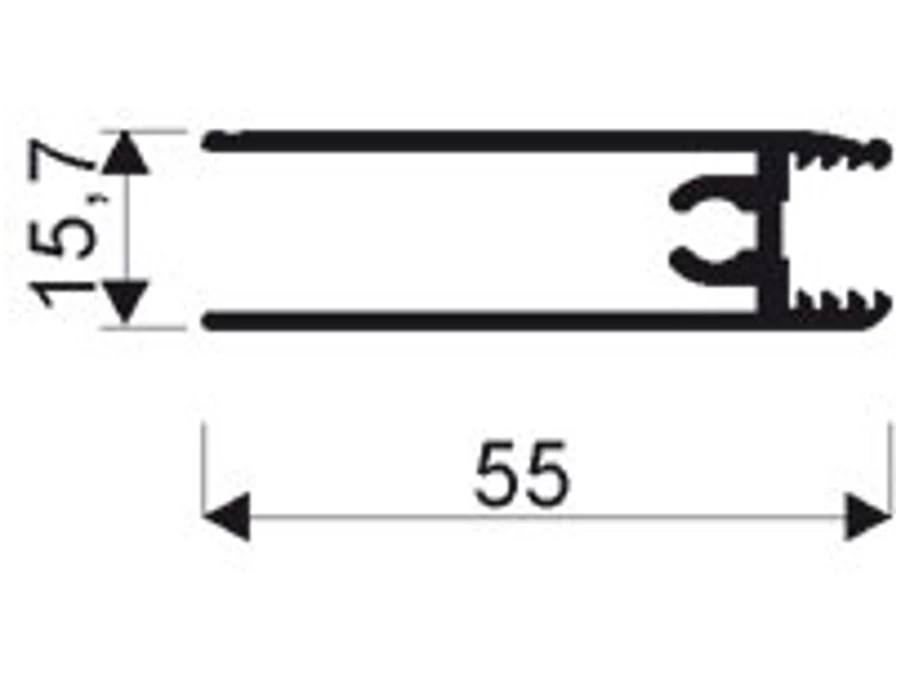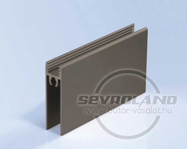A 10 mm-es tolóajtók (fogótól függetlenül) alsó keret profilja. Ebbe rögzíthető az alsó görgő, és egy speciális csavar fogja ösze a fogó profilokkal. (Át kell fúrni a fogó profilt, majd utána az alsó profilba behajtható a csavar - lásd a szerelési segédleten. Ezt a furatot eltakarja a kefecsík.)