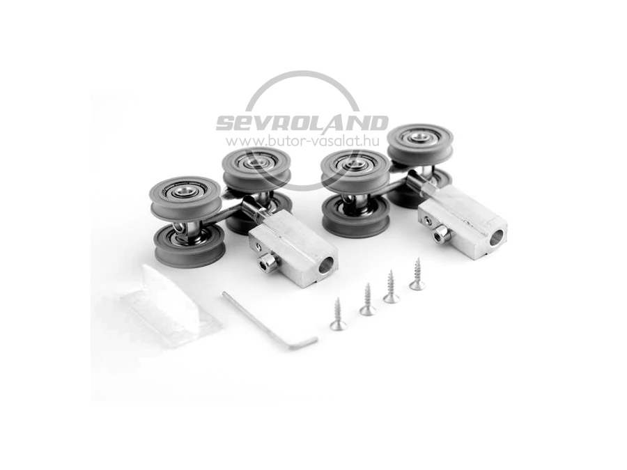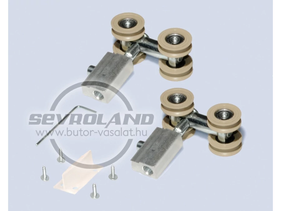 Ez a felső görgő szett 10 mm-es függesztett tolóajtóhoz való. A Sevroll Exclusive sínen fut.