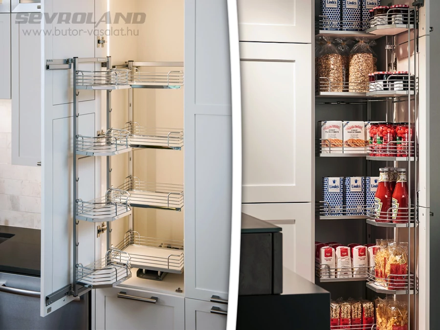 Túl sok a pakolnivaló, nem fér el egy klasszikus kamraszekrénybe? Semmi gond: a Tandem kamravasalat rendszer használható duplán is, így elképesztően sok tárolóhelye lesz... A kétszer olyan tágas kamraszekrény még praktikusabban kihasználható, miközben változatlanul könnyen átlátható!