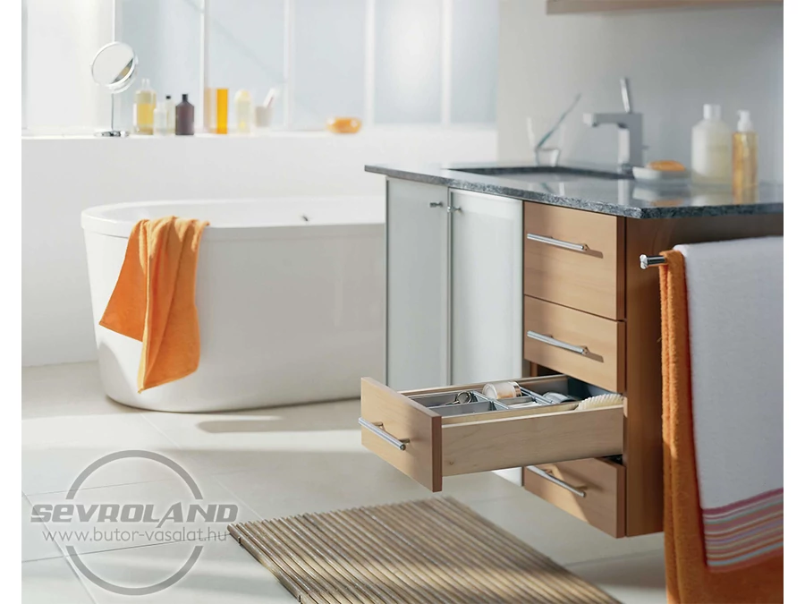 450 mm-es részleges kihúzású, fékes TANDEM fióksín. BLUMOTION-nel csillapított a lágy és halk záródásért.