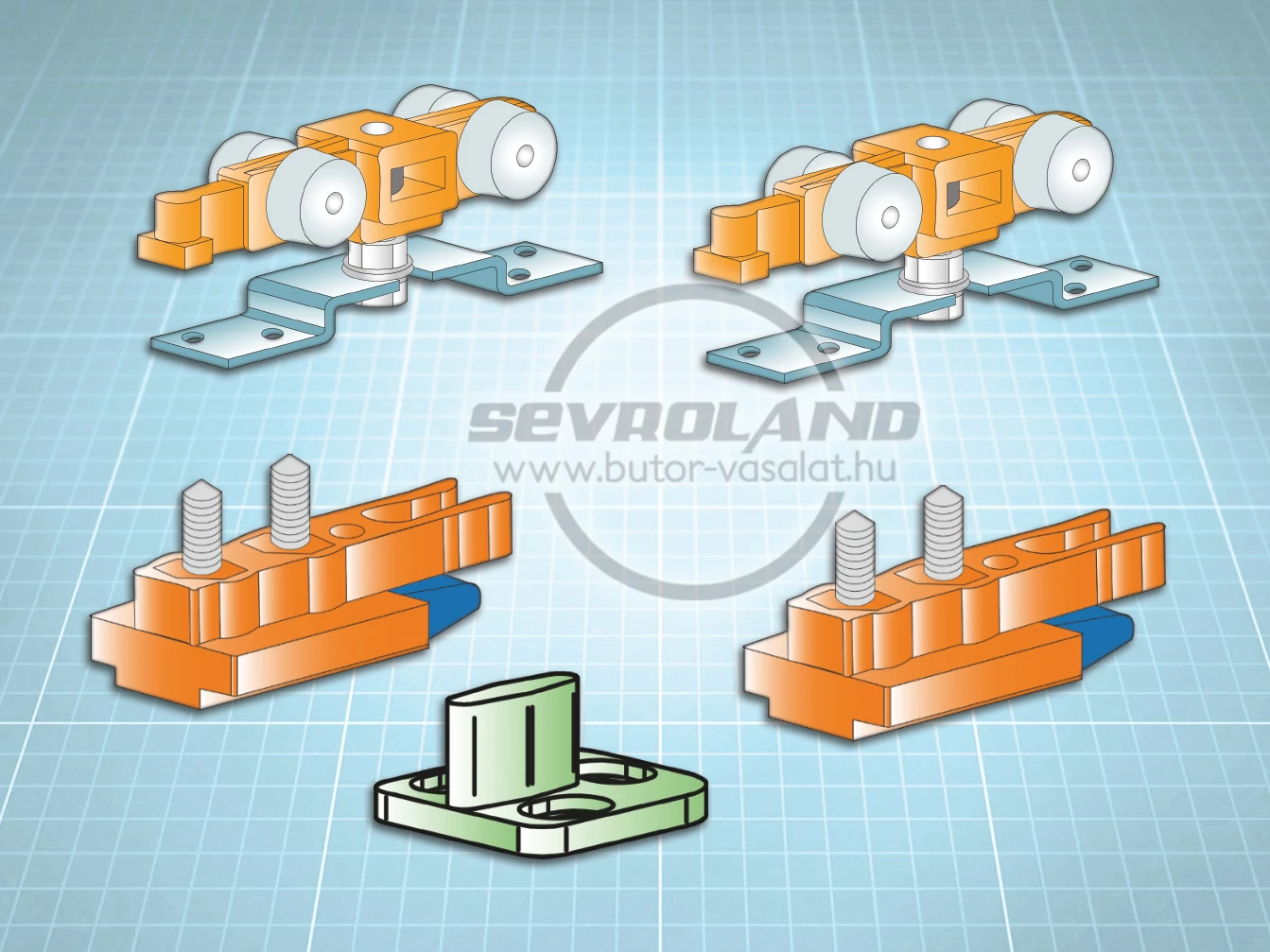 Az olasz TERNO Staffa Normale függesztett tolóajtó rendszerhez tartozó, fék nélküli görgőszett. Használható egy és kétszárnyú tolóajtókhoz. A csapágyazott görgők a precíz kialakítású sínben lágyan és halkan futnak. A sín falra vagy mennyezetre is rögzíthető. A szetthez tartozó 2 db gumiütközős ajtórögzítő elem biztosítja az ajtó stabil helyzetét teljesen nyitott vagy zárt állapotban. Magassági állítási lehetőség: ± 6 mm