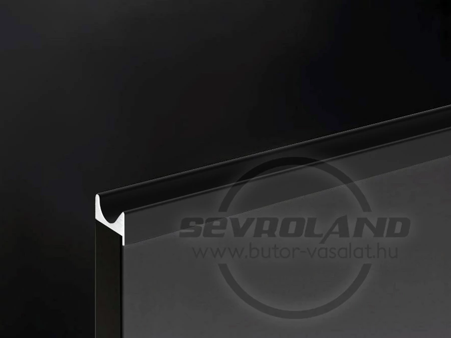 ZOBAL UKW-4 bútorajtó élbe-marható fogantyú profil. Elsősorban felsőszekrény ajtók alsó élére ajánlott. Matt fekete (eloxált) felületű.