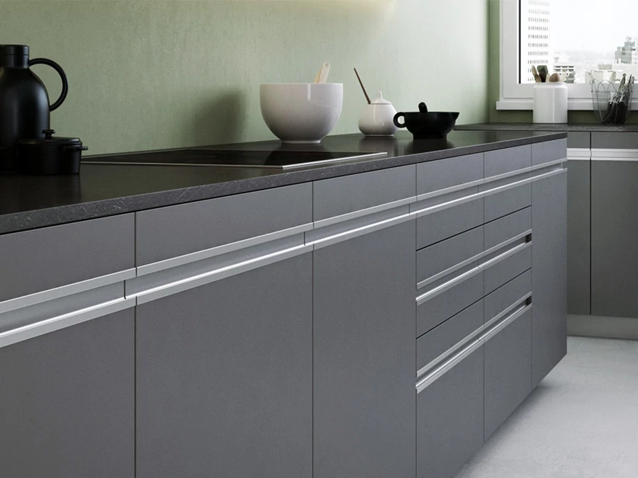 A ZOBAL UKW fogó rendszerrel egy modern, a bútorfronton vízszintesen (ritkán függőlegesen is) végigfutó design alakítható ki. Az alumínium fogó a bútorfront síkjába kerül, így nincsenek kiálló elemek. Az UKW-6 fogó profil az ajtólapban úgy helyezkedik el, hogy mindkét oldalról a front anyaga fogja közre, egyfajta osztó profilként funkcionál. Ideális akkor is, ha egy előlapon belül kétféle anyagot szeretnénk használni: elegáns átmenetetet biztosít a két felület között. Elhelyezhető vízszintesen és függőlegesen is.