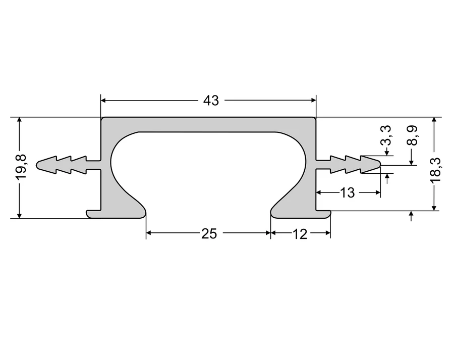 ZOBAL UKW-6 bútorajtó lapba marható fogantyú (osztó) profil. Vízszintesen és függőlegesen elhelyezve is alkalmazható.